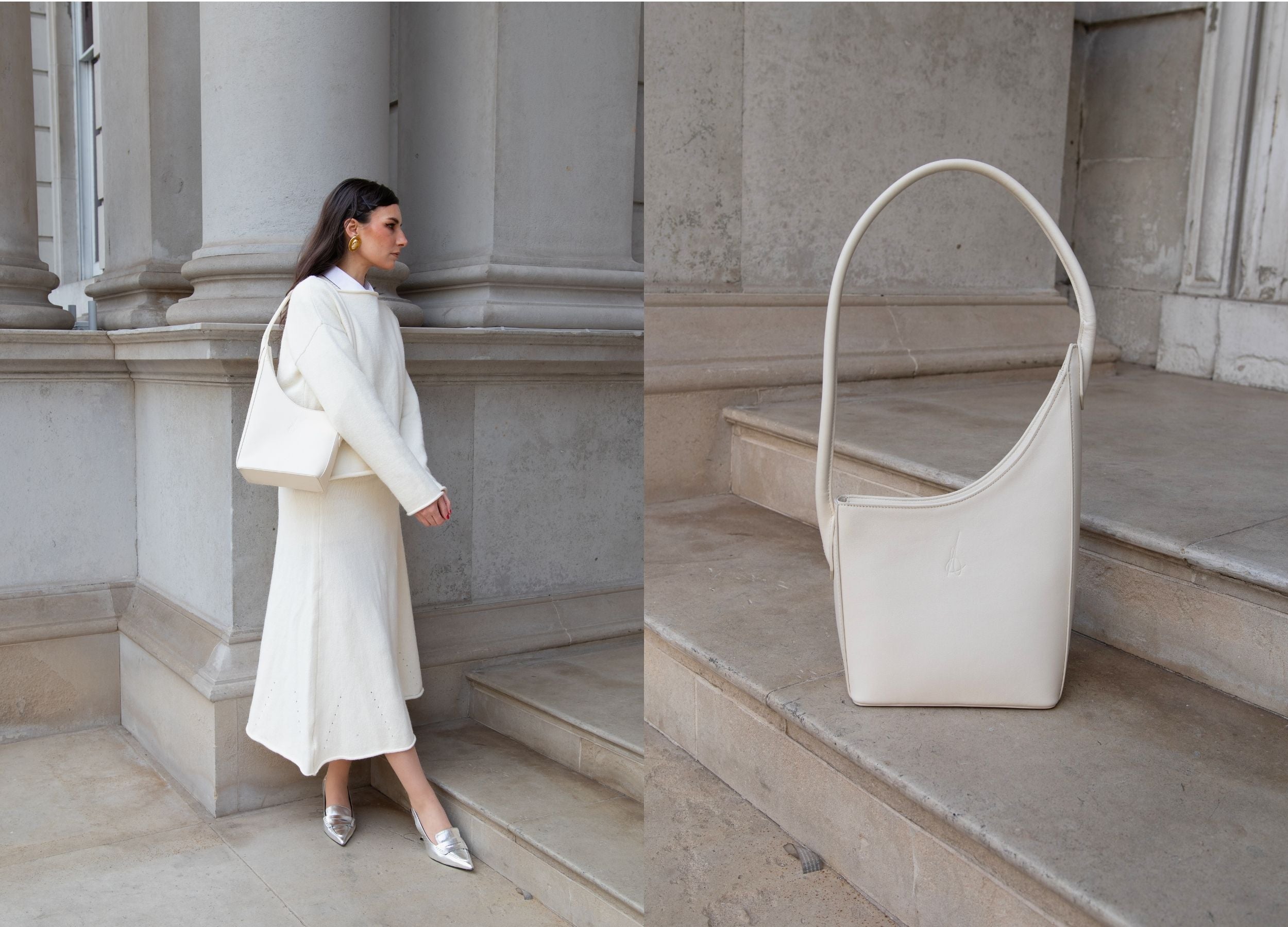 Introducing Maria: a bold, architectural masterpiece that defines everyday elegance. This statement shoulder bag is meticulously crafted from calfskin, featuring an asymmetrical design and elegant curved handles. Maria boasts a unique façade, perfectly embodying strength and empowering female independence in every detail.